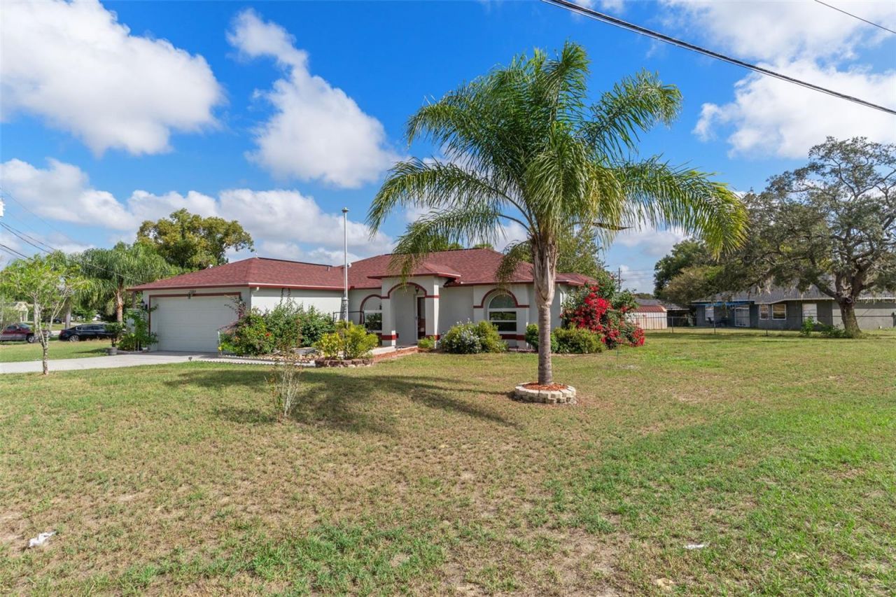Impeccably maintained 3-bedroom 2-bath home on a spacious corner lot with shaded backyard and deck. Roof replaced 3 months ago; exterior painted 4 months ago. Most windows upgraded to double-pane. Four-season tiled Florida room features sliding double-pane windows and dedicated A/C unit. Granite countertops in kitchen with eat-in area, custom lighting, and motion-activated faucets. Greatroom-style open floorplan with high ceilings and knockdown textured walls/ceilings. Lifeproof LVP and tile flooring throughout. Large guest bedrooms. Inside laundry with comfort-height washer & dryer (2017). Drain field replaced within the last 2 years. Detached 10x12 utility shed included. 2-car garage with hurricane-rated door, pull-down attic access, workbenches, and shelving. Energy-efficient and convenience features throughout make this home truly move-in ready!